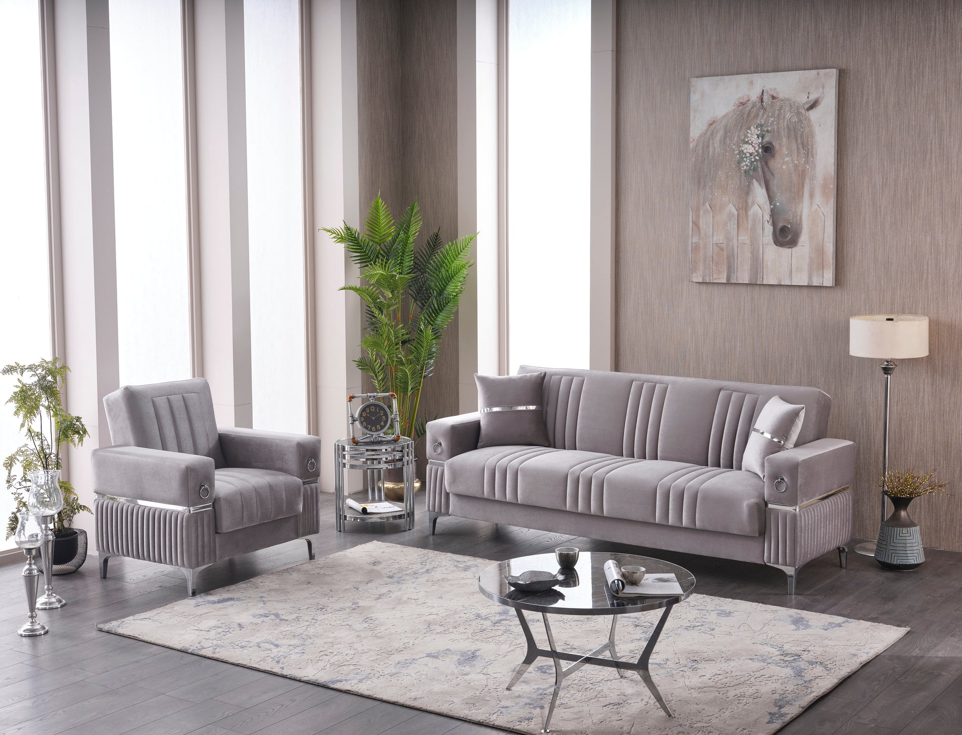 Tilda Grey/Silver Sofa Set - 3 Seater + 2 Seater + 1 Seater with Storage & Bed Functionality | Free UK Delivery